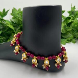 Designer Kundan Green Bead Golden Colored Anklet Payal Set