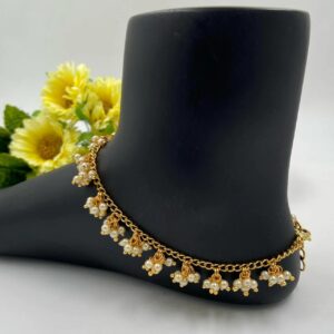 Delicate Golden Colored Pearl Cluster Anklet Payal Set