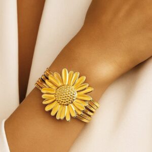 Sunflower Bold Gold-Tone Statement Cuff Bracelet