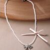 Chic Silver Bow Pendant Necklace – Cream Beaded Chain