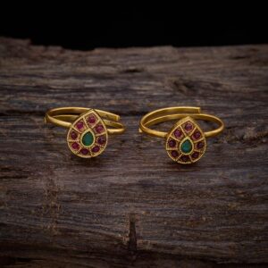 Temple-Inspired Golden Toe Rings with Green and White Detailing