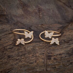 Butterfly Motif Golden Adjustable Toe Ring Pair with Sparkling Stones