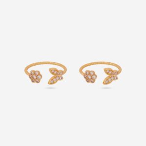 Petite Floral Charm Golden Adjustable Toe Ring Pair with Sparkling Zircon