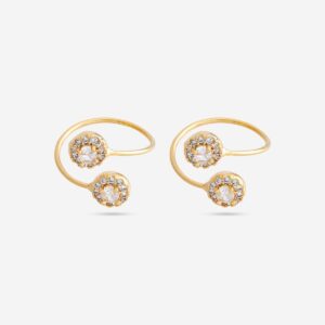 Dual Halo Design Golden Adjustable Toe Ring Pair with Glimmering Zircon
