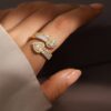 Show off modern glamour with this adjustable ring, featuring a striking double buckle design in radiant gold tone. Both buckles are encrusted with brilliant baguette and round-cut cubic zirconia stones, giving the ring a dazzling, high-shine finish. The open band ensures a comfortable, flexible fit for most finger sizes, making it an ideal accessory for attending parties, work events, or everyday fashion styling.