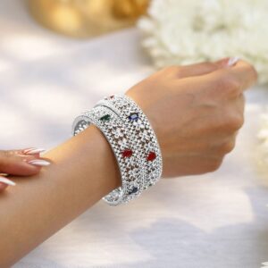 The bangles are lightweight yet sturdy, designed for comfort and versatility. Their lively style brings a regal touch to sarees, lehengas, and Indo-western outfits, making them the perfect accessory for grand celebrations, weddings, gifting, or personal collections. Add instant sparkle and vibrance to your attire with these stunning artificial jewelry bangles.